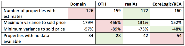 CoreLogic provides the same price estimate on its website, propertyvalue.com.au, as on partner REA’s website. For this reason, we have bundled the two together as CoreLogic/REA.